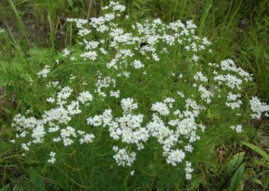 | Wildlife Value: | White flowers provide nectar for a wide diversity of bees, docile wasps, butterflies and beneficial insects including the at-risk Yellow-banded Bumble Bee (Bombus terricola). A host plant for tiny Mint Moth caterpillars. |
